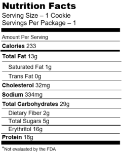 Contains Gluten A gingerbread spice cookie filled with white chips and Biscoff cookie pieces, and stuffed with a protein cookie butter core.